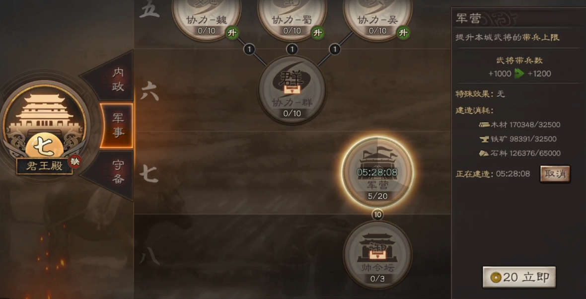 率土之滨建设城寨的费用和时间需要多久完成